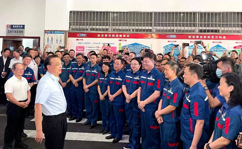 走出五發(fā)車間,李克強(qiáng)與玉柴研發(fā)、技能人才代表熱烈交流。他說,玉柴這70年來,始終聚焦主業(yè),而且始終瞄準(zhǔn)國際先進(jìn)技術(shù)和裝備水平,這走過的路是不平凡的,玉柴現(xiàn)在創(chuàng)造的業(yè)績也是輝煌的,所有玉柴人都應(yīng)該為此感到自豪??吹接癫襁@樣的發(fā)展態(tài)勢,看到玉柴所創(chuàng)造的產(chǎn)品,深感玉林真是一個(gè)美玉成林的地方,而玉柴就是“玉中之美”,不負(fù)國家,也不負(fù)玉林這個(gè)美譽(yù),“眾人在拾柴,火焰很高”。希望玉柴堅(jiān)定不移走創(chuàng)新驅(qū)動(dòng)高質(zhì)量發(fā)展之路,努力打造世界一流企業(yè)。